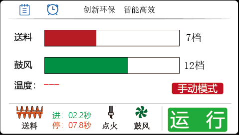 運行流程【待機】>【前吹掃】>【預(yù)送料】>【點火】>【緩沖】>【運行】>【冷卻(防回火)】;