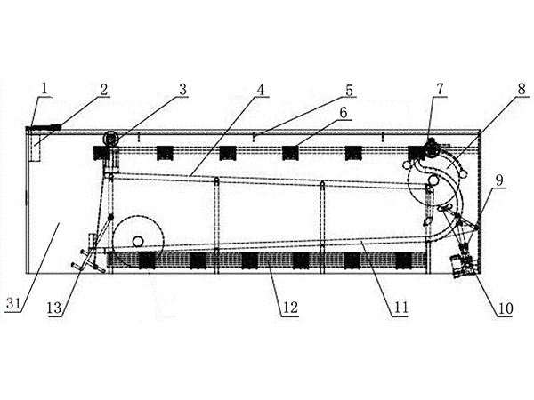兩層,C型軌道,最低卷膜中心離地面的距離550mm。軌道間隔650mm。